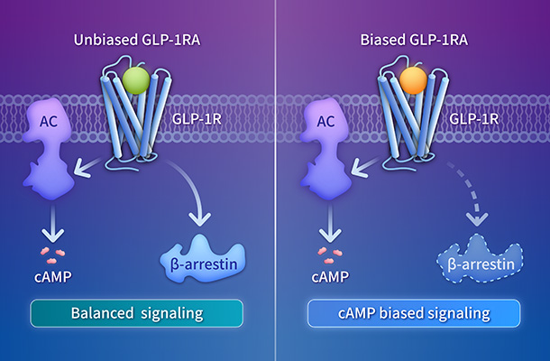 BiasVantage? 偏向型激動(dòng)劑發(fā)現(xiàn)平臺(tái)利用基于結(jié)構(gòu)的合理設(shè)計(jì)及全面的信號(hào)傳導(dǎo)分析,打造療效增強(qiáng)、脫敏程度降低的精準(zhǔn)療法。該平臺(tái)開發(fā)信號(hào)選擇性配體,通過降低脫敏程度延長(zhǎng)受體活性,從而比非偏向型方法獲得更佳的治療效果。
